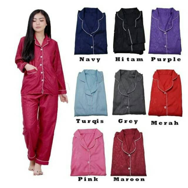 Jual Baju Tidur Lengan Panjang Piyama Satin Nyaman Polos Motif Di Lapak Nidiva Bukalapak